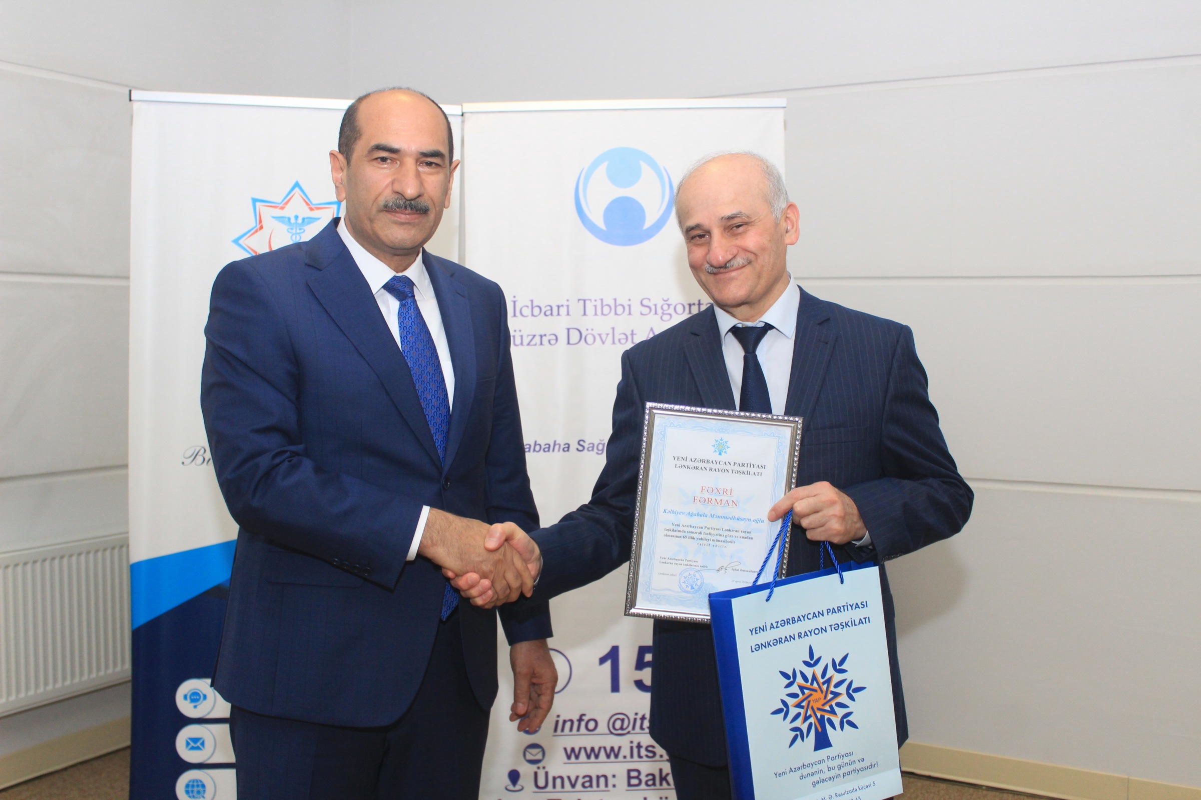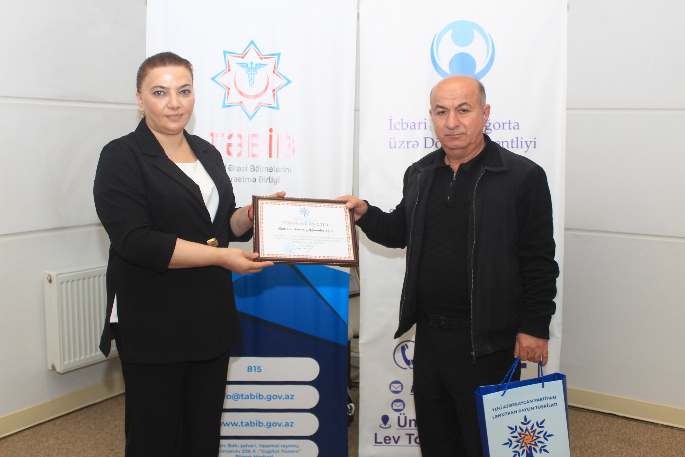 Tədbirin sonunda Yeni Azərbaycan Partiyasının sıralarına yeni qəbul olunmuş şəxslərə üzvlük vəsiqələri təqdim edilmiş, partiyanın fəaliyyətində fərqlənən və fəallıq göstərən tibb işçiləri Fəxri Fərman və hədiyyələrlə təltif olunmuşlar.
