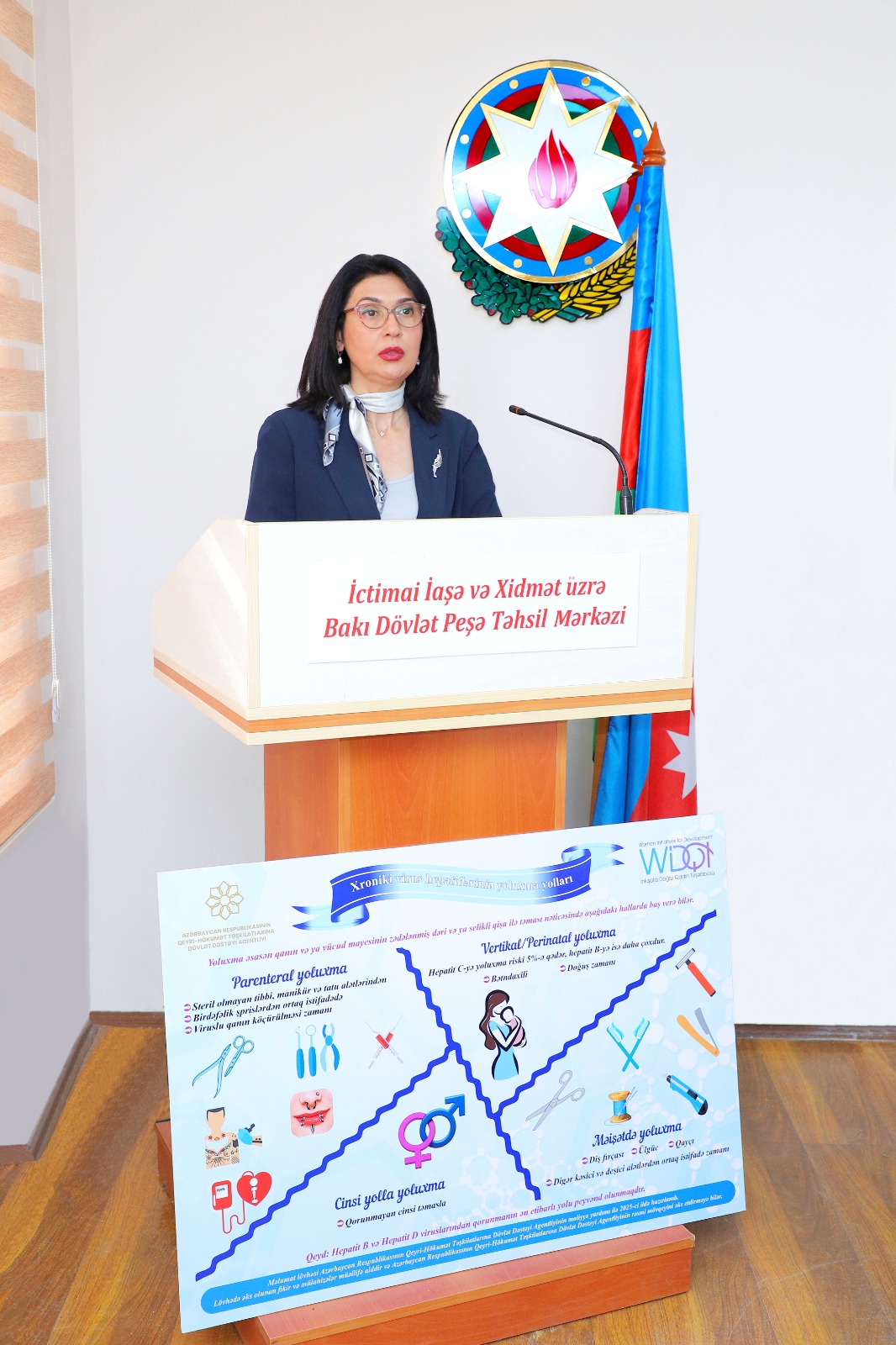 “İnkişafa Doğru Qadın Təşəbbüsü” İctimai Birliyi Azərbaycan Respublikasının Qeyri-Hökumət Təşkilatlarına Dövlət Dəstəyi Agentliyinin maliyyə yardımı ilə icra etdiyi “Gözəllik salonlarında təhlükəli yoluxucu xəstəliklərin yayılması əleyhinə təlimlər” adlı layihə çərçivəsində növbəti təlimini keçirib. “Gözəl ol və sağlam qal!” devizi altında təşkil olunan təliİctimai Birliyi və Xidmət üzrə Bakı Dövlət Peşə Təhsil Mərkəzində baş tutub.Tədbiri giriş sözləri ilə açan İctimai İaşə və Xidmət üzrə BDPTM-in direktoru Fatma Çandirova “İnkişafa Doğru Qadın Təşəbbüsü” İctimai Birliyinin hazırda icra etdiyi layihənin zəruriliyini diqqətə çatdırıb.ctimai Birliyin sədri, layihə rəhbəri Ziba Nəbiyeva çıxışında İctimai İaşə və Xidmət üzrə BDPTM-də bərbər-vizajist-manikürçü ixtisası üzrə təhsil alan tələbələrə təlimin keçirilməsi təşəbbüsünün dəstəklənməsinə görə Peşə Təhsili üzrə Dövlət Agentliyi və Mərkəzin rəhbərliyinə təşəkkürünü bildirib. O qeyd edib ki, təhlükəli xroniki infeksion xəstəliklərin zamanında aşkarlanıb müayinə və müalicəsinin aparılması olduqca vacib məsələdir. “Məsələn, viral hepatitlərin B, D və C növləri, eləcə də İnsan İmmunçatışmazlığı Virusu (İİV) xronikləşməyə meyilli və uzun müddət simptomsuz və ya zəif simptomlarla keçən xəstəliklərdəndir. Zamanında müalicə olunmadıqda xroniki viral hepatitlər qaraciyər sirrozu və xərçənginin, İİV infeksiyası isə Qazanılmış İmmun Çatışmazlığı Sindromunun (QİÇS) yaranmasına səbəb ola bilir”, - deyə Z. Nəbiyeva bildirib.