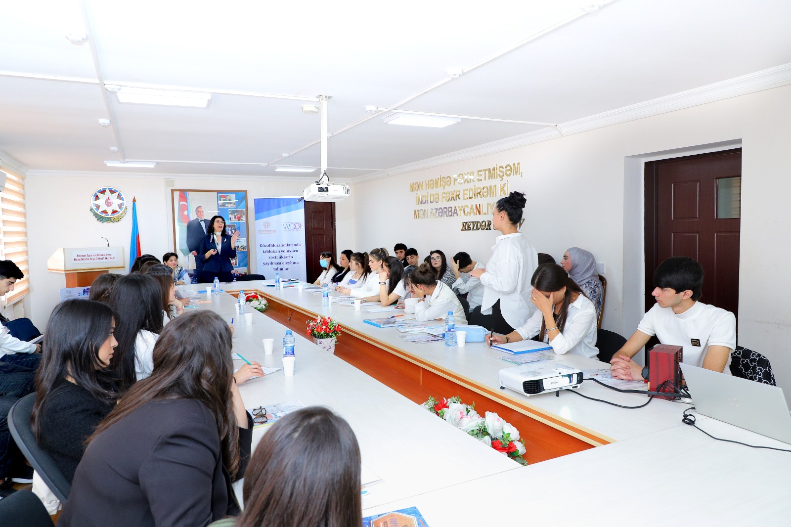 Layihə rəhbəri Ziba Nəbiyeva daha sonra elektron təqdimat vasitəsilə xroniki virus hepatitləri və İİV/QİÇS infeksiyaları haqqında əsas bilgiləri, ötürülmə yolları, qorunma üsulları, müayinə və müalicə, eləcə də gözəllik salonlarında istifadə edilən manipulyasiya alətlərinin dezinfeksiya və sterilizasiyası qaydaları barədə iştirakçılara ətraflı məlumatlar verib.