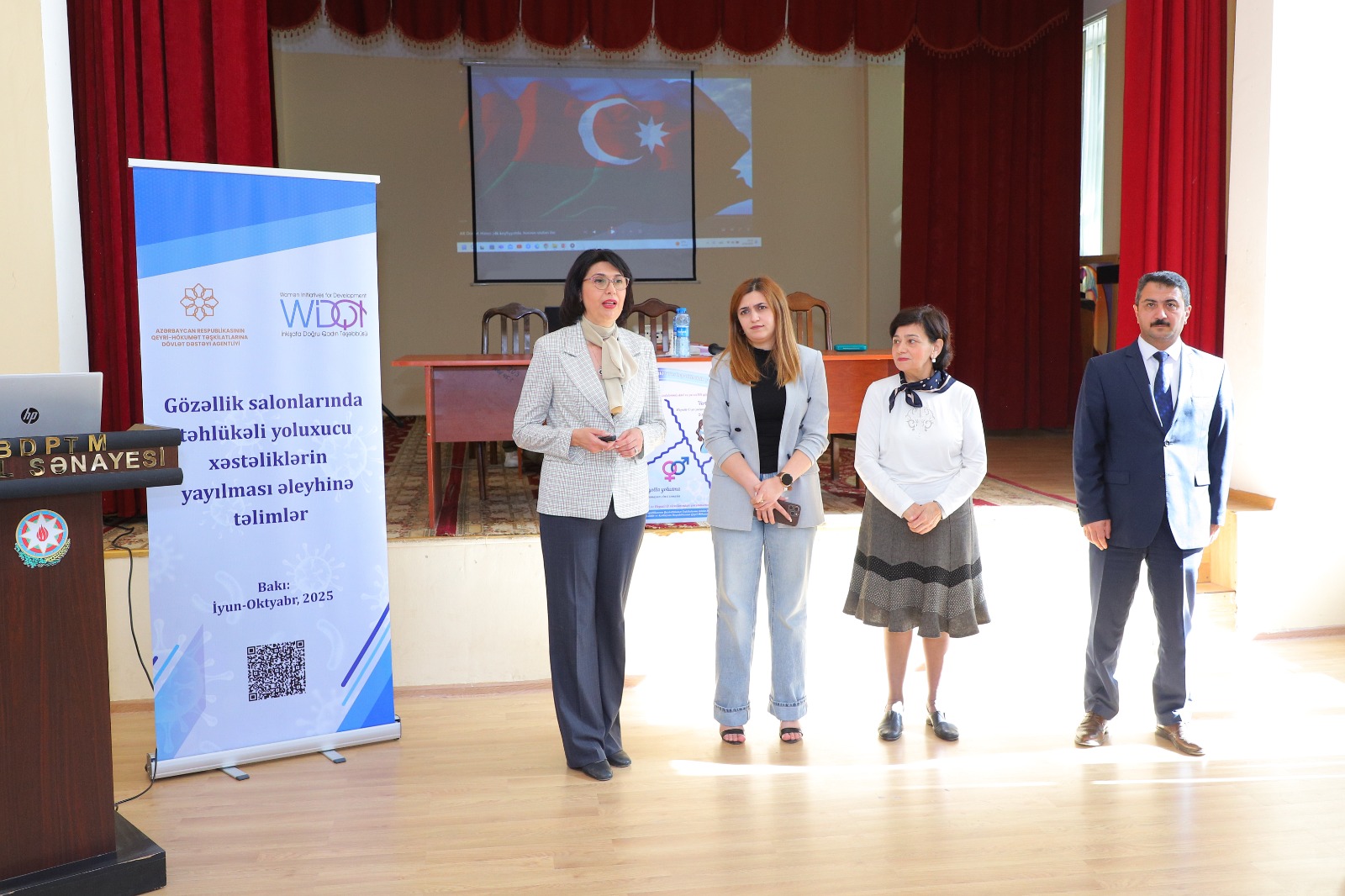 “İnkişafa Doğru Qadın Təşəbbüsü” İctimai Birliyi Azərbaycan Respublikasının Qeyri-Hökumət Təşkilatlarına Dövlət Dəstəyi Agentliyinin maliyyə yardımı ilə icra etdiyi “Gözəllik salonlarında təhlükəli yoluxucu xəstəliklərin yayılması əleyhinə təlimlər” adlı layihə çərçivəsində sonuncu təlimini keçirib.