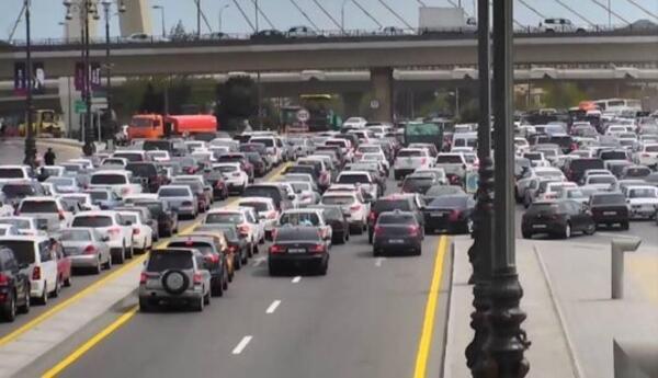Bakının bir sıra yollarında nəqliyyatın hərəkətində sıxlıq yaranıb.
