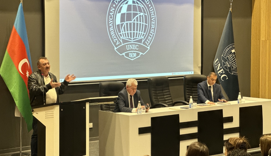 UNEC-də akademik Muxtar İmanov və tanınmış şair Rüstəm Behrudinin tələbələrlə görüşü keçirilib. Rəqəmsal İqtisadiyyat fakültəsinin təşəbbüsü ilə təşkil olunan görüş “Rəqəmsal dövrdə ədəbiyyat” mövzusunda olub.Tədbirin açılışında çıxış edən fakültə dekanı, dosent Elman Cəfərov müasir dövrdə humanitar düşüncənin və ədəbiyyatın rəqəmsal transformasiya ilə paralel inkişafının vacibliyindən söz açıb. O, ədəbiyyatın gənclərin dünyagörüşünün formalaşmasında, dərin düşünmə və tənqidi yanaşma bacarıqlarının inkişafında, həmçinin mənəvi dəyərlərin aşılanmasında mühüm rol oynadığını vurğulayıb.Akademik Muxtar İmanov çıxışında oxucu anlayışına fərqli prizmadan yanaşıb: “Oxucunun gündəlik mübarizəsi əslində insanın özü ilə, biliklə və düşüncə ilə apardığı daxili inkişaf yoludur. Bu gün innovasiya zaman və məkan sərhədlərini aradan qaldıraraq daha açıq və inklüziv mühit yaradır. Bu mühit təkcə bilik ötürmür, eyni zamanda şəxsiyyətin, dəyərlərin və düşüncə tərzinin formalaşmasına xidmət edir. İnnovasiya yalnız texnologiya deyil, düşüncənin sərhədlərini genişləndirən və cəmiyyətə real töhfə verən bir dəyərdir”- deyə akademik bildirib.Muxtar İmanov tanınmış şair Rüstəm Behrudinin yaradıcılığına da toxunaraq, onun türk dünyasında özünəməxsus poetik düşüncəsi ilə seçildiyini diqqətə çatdırıb. O, şairin əsərlərinin beynəlxalq aləmdə maraqla qarşılandığını, Almaniya, Türkiyə, Fransa və digər ölkələrdə nəşr olunduğunu vurğulayıb.Görüşdə çıxış edən şair Rüstəm Behrudi şairliyin adi bir peşə olmadığını, onu digər sahələrdən fərqləndirən mənəvi mahiyyətə malik olduğunu bildirib: “Şairlik öyrədilən deyil, yaradana bağlı olaraq insanın daxilində formalaşan bir haldır. Poeziya yalnız ağlın deyil, eyni zamanda ruhun dilidir və söz insanın iç dünyasından keçmədikcə oxucuya təsir göstərə bilmir”. O qeyd edib ki, zaman dəyişsə də, şeir insanın daxilindəki həqiqəti qorumağa, onu söz vasitəsilə yaşatmağa davam edir.Görüşdə Rüstəm Behrudi məşhur şeirlərini səsləndirərək, auditoriyada emosional mühit yaradıb. Şairi böyük maraqla dinləyən tələbələr ona çoxsaylı suallar da ünvanlayıblar.Sonda Rüstəm Behrudi kitablarını imzalayaraq tələbələrə hədiyyə edib.