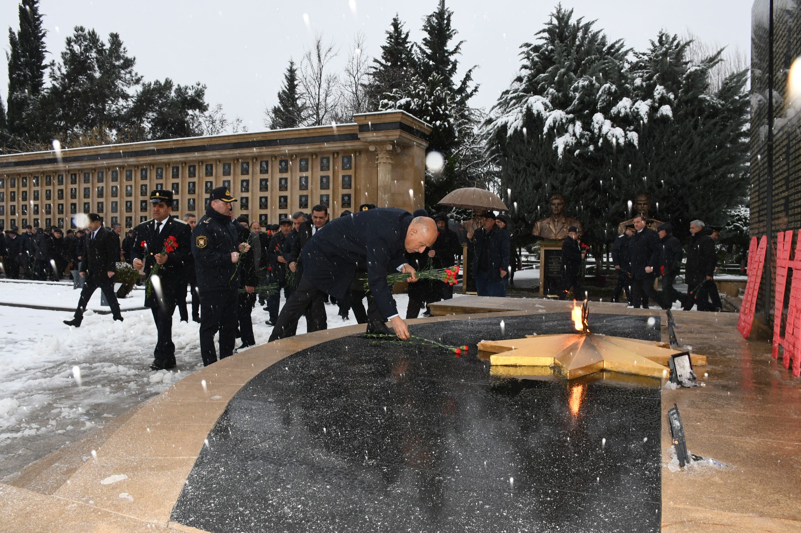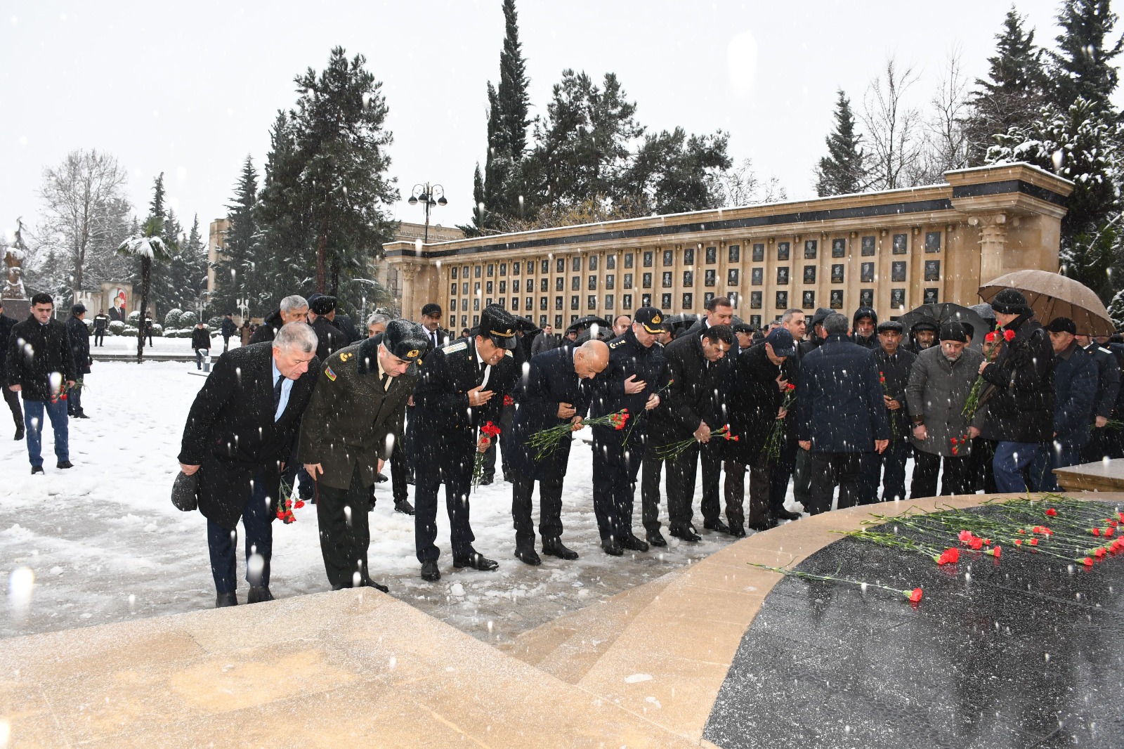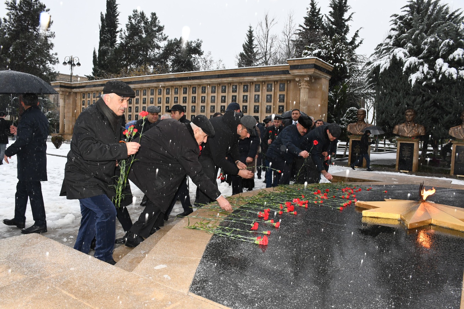 İştirakçılar əvvəlcə 20 Yanvar şəhidlərinin xatirəsini ehtiramla yad edib, abidə önünə gül dəstələri düzüblər.