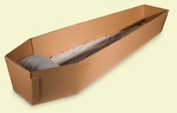 Karton tabutlar həmçinin torpağa basdırılmaq üçün də uyğundur: dibinə 600 rubl dəyərində xüsusi taxta çərçivə qoyulmalıdır.